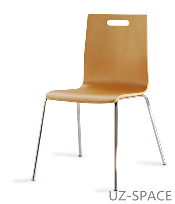 椅座、椅背为多层榉木板经高温热压而成,表面环保PU漆面处理,采用优质环保粘合剂,优质不锈钢椅腿,椅面可选加西皮坐垫。
