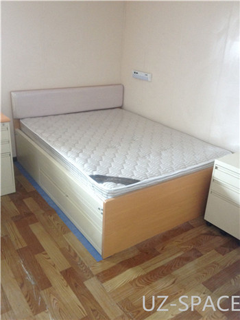 | 6 | 钢制单人床(带床垫) | UZ-ST-DRC2012-850MH | 优泽空间 | 2050 X 1200X 850 | 基材:1、床身采用上海宝钢优质一级冷轧钢板,床架规格为50mm*50mm*1.5mm方钢管;符合 CB3233-84 CBT3483-93标准2、床头、床尾采用板材遮挡以加强空间的独立性,床头加软包。3、工艺:焊口满焊,表面磷化处理后静电喷塑,落地处安装塑料垫脚。4、床屉下方两个大抽屉,采用上海宝钢一级冷轧钢板,钢板厚度为0.8mm,三节导轨抽屉抽拉顺畅。5、框架焊接和墙面固定的角铁四个,需带固定床用的与角铁配套的外六方螺丝12个6、椰棕床垫,床垫厚度为100mm,采用优质椰棕,经久不易变形,海绵为高密度定型泡棉外敷丝绵,面料为优质专业阻燃面料。 优质不锈钢床帘轨道,PP滑轮坚实耐用,优质植物绒一级防光布料,防光防紫外线隔热 |